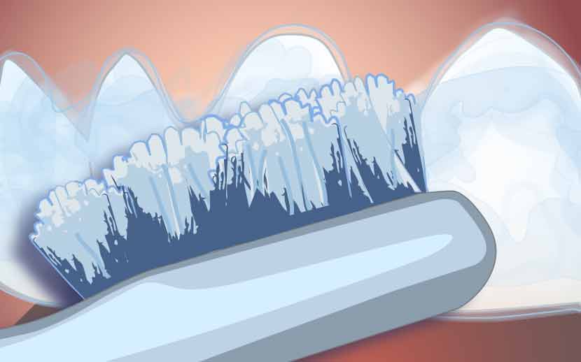 Enlever la gouttière, brosser vous les dents avec une brosse à poils souples pour enlever le gel restant sur les dents.