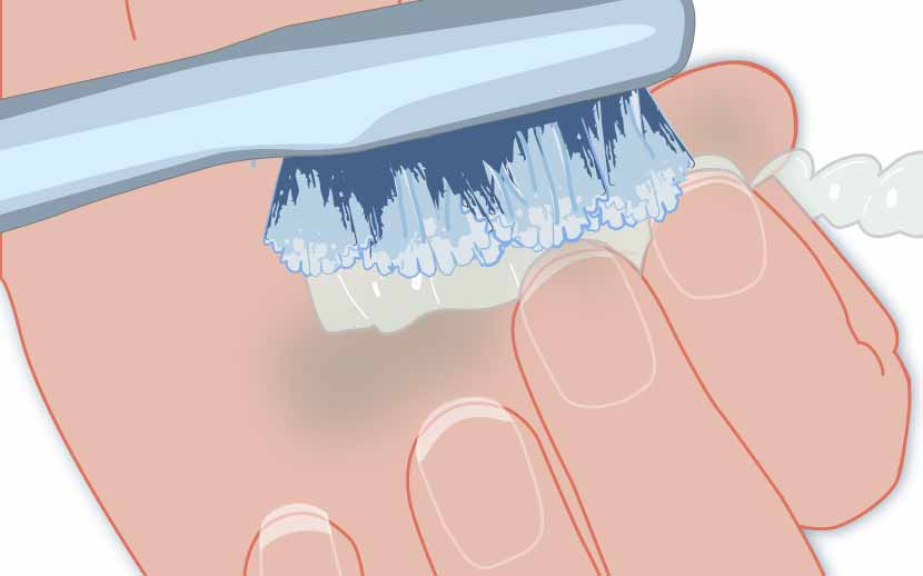 Nettoyer la gouttière avec une brosse à dents à poils souples. Ranger la dans son étui.